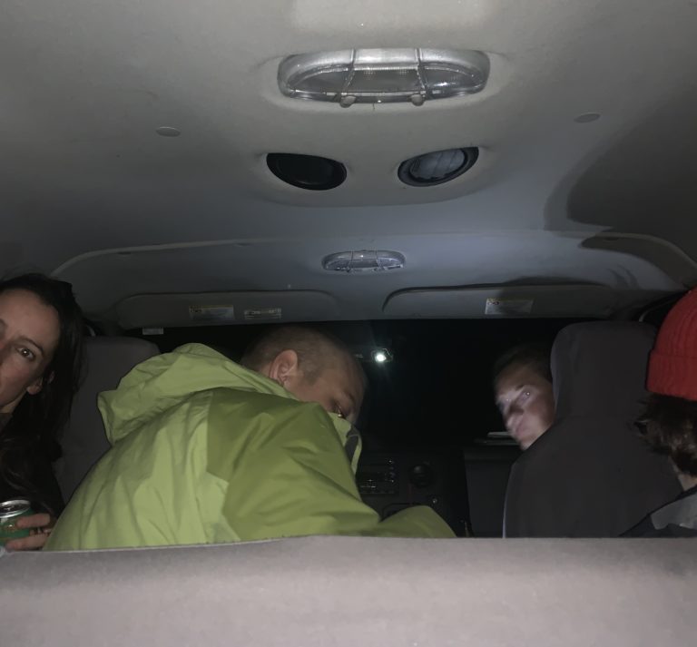 As thunder storms and flood warnings move across Western Illinois over the weekend, The River Semester find brief respite in the camp bus. Unanimous alerts from meterological agencies appear on cell phones with remaining battery charge.